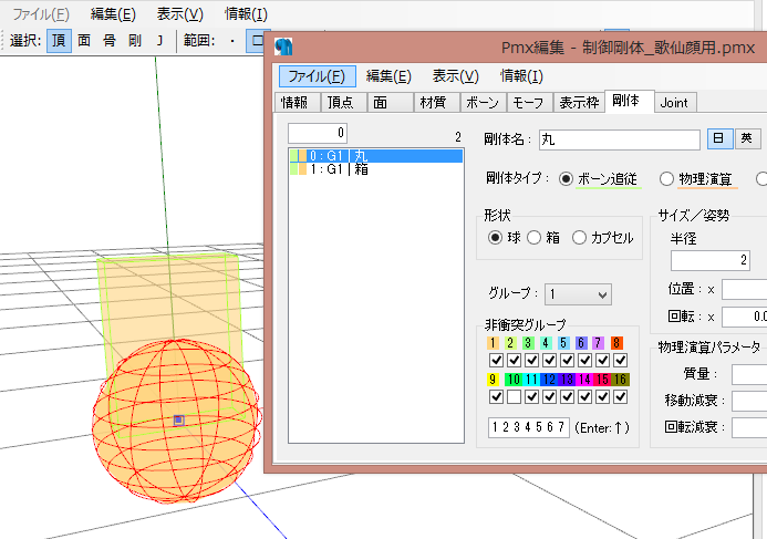 上のツイートはツイッターの埋め込み機能を使用していますので、消された時用に要約↓【ゆる募】MMDの剛体について質問です。多人数で踊って頂いた際、一部のモデルの物理があまりにも荒ぶるので調べたところ、他モデルの剛体が干渉しているようだった為、再度位置調整を行っていたのですが、画像の状態となり調べても類似事例に辿り着けず途方に暮れております。 pic.twitter.com/lslWcrQoIE