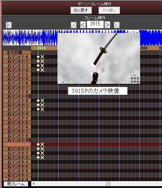 なので演算をするようにしてやる(トレースモードはFとFの間の演算のみを行う)とモデルのボーンの位置に戻るわけです。