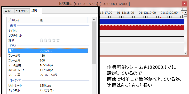 変換して読み込んだところ、こちらはきっちり2:10の動画に。オーよっしゃよっしゃと思ったのですが、内容を見て見たところ